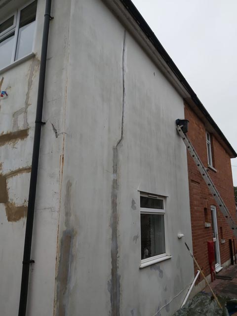Side of House Exterior Cutting Out Loose Render in Bournemouth - Before